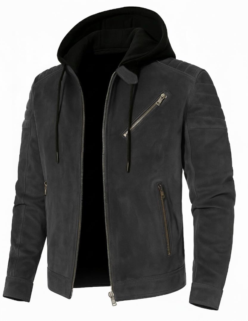 Stay stylish and warm with this Suede Jacket featuring a Removable Hood. The soft suede exterior brings luxury, while the detachable hood gives you the freedom to switch between a casual and refined look. Perfect for winter layering and semi-formal outfits.