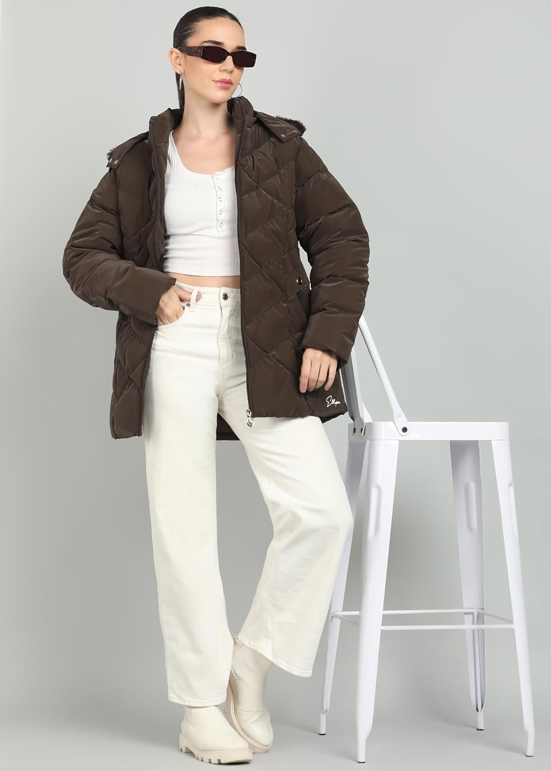 Stay warm and effortlessly stylish in this Women Jacket With Detachable Hood, designed to adapt to your lifestyle. Featuring a sleek silhouette and a removable hood, this jacket gives you the flexibility to switch between a casual sporty look and a polished, chic outfit.